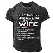 Why Choose Men's 5 Things You Should Know About My Wife Retro Vintage T shirt Tee Washed Shirt Cotton Short Sleeve Graphic Shirt Black plush Tee?