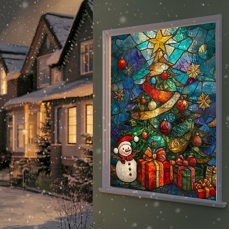 Why Choose Christmas Window Cover Decorations, Fabric Stained Glass Tree Curtain Movie Poster Window Door Covering Decor for Christmas House, Window Clings Decals Indoor Outdoor?