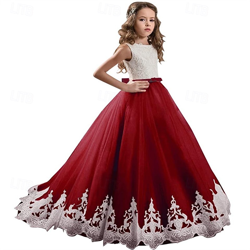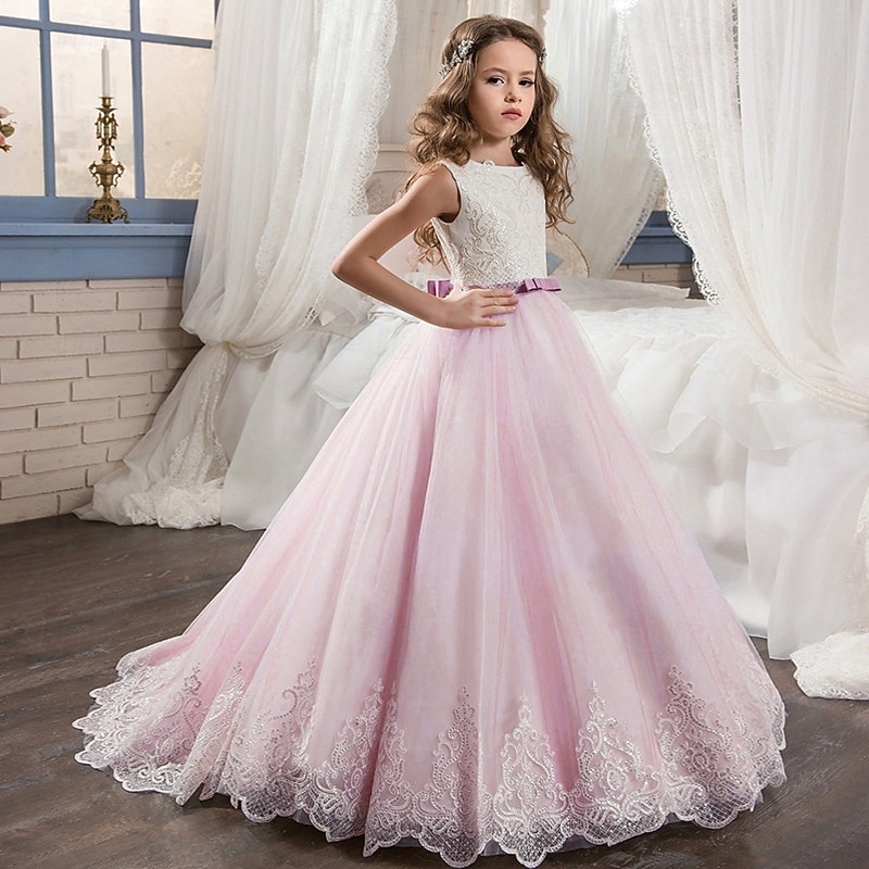 Why Choose Flower Girl Dress Kid's Girls' Princess Dress Performance Wedding Party Elegant exquisite Lace Mesh Solid Color Sleeveless Crew Neck Light Yellow Light Pink 4 years+?