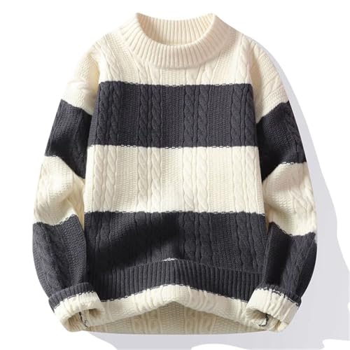 Men's Loose Casual Striped Knit Sweater Slim Fit O-Neck Long Sleeve Pullover Cartoon Print Knitted Sweater