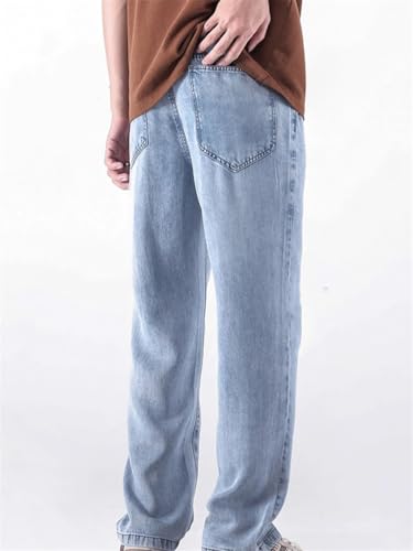 Men's Summer Thin Denim Jeans Loose Fit Straight Cut Elastic Waist Casual Long Trousers