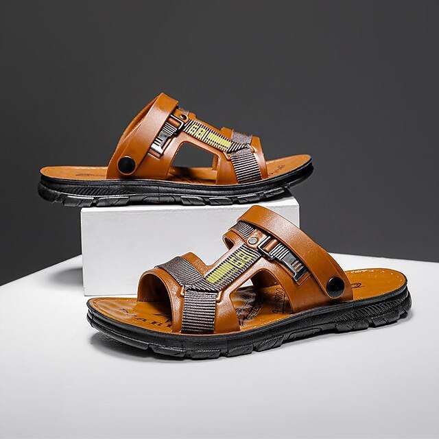 Highlights [Fabric and Materials] : Crafted from high-quality PVC, these men's sandals boast durability and breathability. The use of rich brown and vibrant yellow highlights creates a visually appealing design that complements any casual summer wardrobe. [Fit and Style] : Featuring a comfortable and versatile open-toe design, these sandals are perfect for warm weather. The dual-strap construction provides a secure and adjustable fit, while the classic loafer closure adds to the ease of wearing. [Design Highlights] : These sandals incorporate a up-to-date woven fabric element with a striking black and yellow pattern. The back strap enhances support and stability, making them suitable for all-day wear. The robust black rubber sole offers excellent grip and traction on various surfaces. [Occasions] : Ideal for daily wear, beach activities, and casual outings, these sandals are designed for summer adventures. Their comfort and style make them suitable for a variety of settings, ensuring they are a versatile addition to your footwear collection. [Size Range] : Available in sizes 40 to 44, these sandals cater to a variety of foot sizes, ensuring a comfortable fit for everyone. Perfect for everyday use. supreme materials and excellent craftsmanship ensure long-lasting durability.