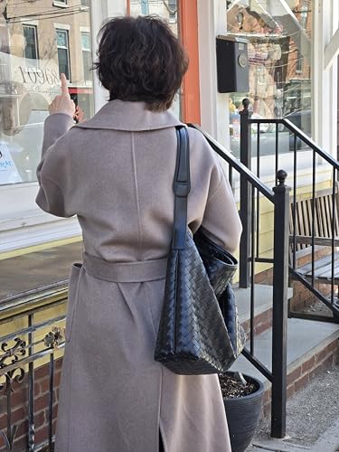 Woven Leather Shoulder Bag, Black Tote, 15 x 14 x 5 inches
