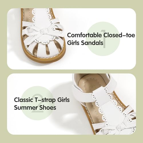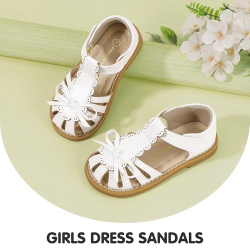 PANDANINJIA Toddler Girls Sandals Closed Toe T-Strap Kids Dress Summer Flats Sandals Cute Bow Flower Girl Shoes
