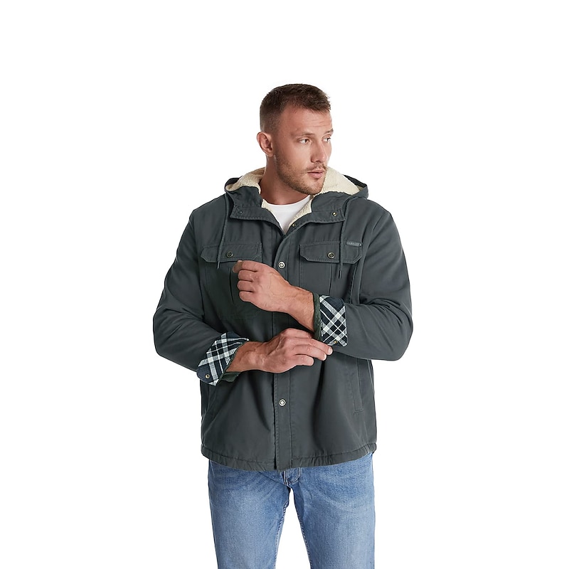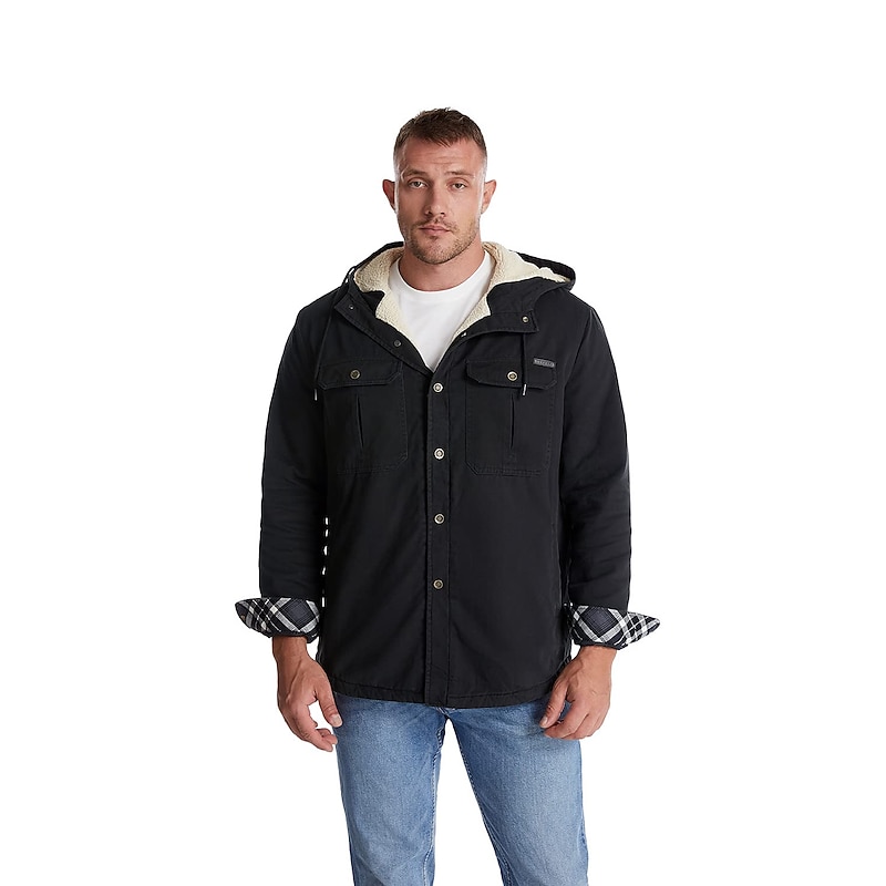 - Choose from a Plaid shirt jacket with flannel lining, or a Solid color shirt jacket with Sherpa lining.