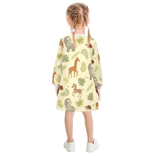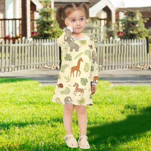 Elephant Zebra Girls Dresses Long Sleeve Sweatshirt Dress for Girls Winter Toddler Casual A Line Dresses Size 2-8T