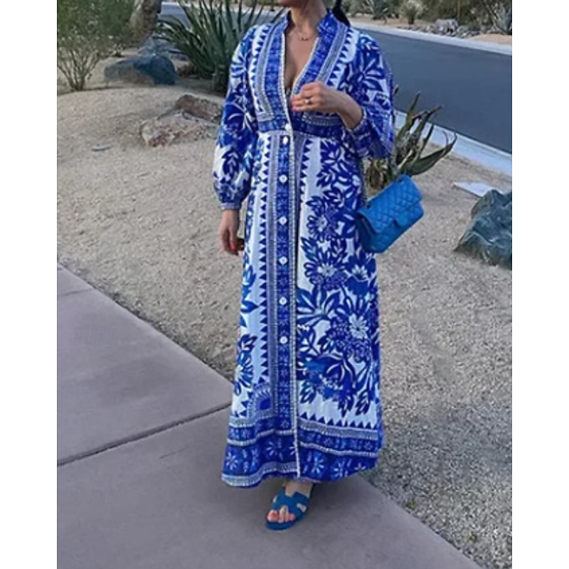 This Women's Long Dress Maxi Dress Print Dress Fashion up-to-date Lantern Sleeve Outdoor Vacation Going out Regular Fit Flower Long Sleeve V Neck Blue Green Fall combines elegant design with practical functionality. Every detail has been carefully considered to ensure you get the best possible experience. The supreme construction means this product will serve you well for years to come.
