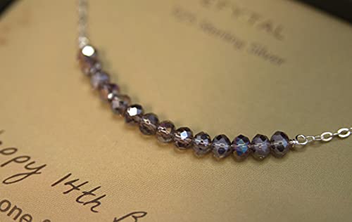 Material: Sterling SilverMetal type: Sterling SilverClasp type: LobsterChain type: CableGem type: No GemstoneItem type name: Pendant NecklacesMeaning: When she wears this beautiful necklace of 14 beads, one for each precious year, she will have a reminder that your admiration for her is infinite. The perfect sparkly accessory to commemorate fourteen years in the life of an awesome young woman. A sentimental 14th birthday gift for teens, be it sister, daughter, granddaughter, or niece.Length, Measurements, Materials: This cute aesthetic jewelry is made of 925 Sterling Silver and measures 18. The unique smoky purple-grey beads are so pretty, and perfect teen trendy stuff for daughter, granddaughter, or niece to wear every day!finest: We're proud to use 925 Sterling Silver and 14k Gold Filled materials, sourced from reputable suppliers and made to last. Our 5-year warranty applies to all of our pieces - you’ll get support if anything goes wrong with your jewelry.Great Service: We're a small family business with a big heart! Our Maryland-based team is committed to giving all our customers the best experience possible. We go above and beyond to fix any issue - you'll always be speaking with real people who care.Signature Packaging: Each order comes with a gift box, bag, tissue, and extra goodies to keep the jewelry shiny. Only takes a minute to assemble, and our variety of pieces and message cards make it easy to find the perfect present for any occasion. Perfect for everyday use. top-grade materials and excellent craftsmanship ensure long-lasting durability.