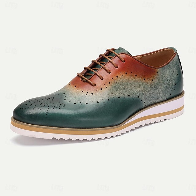 Featuring a striking gradient color transition from deep green to warm brown, these brogues stand out with their one-of-a-kind visual appeal. The classic brogue perforations on the upper add an elegant touch to the latest design, while the durable white ribbed outsole ensures excellent grip and a contemporary edge.