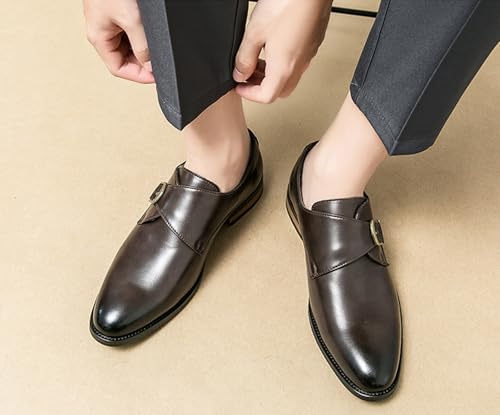 Sole material: RubberOuter material: Faux LeatherClosure type: BuckleWater resistance level: Not Water Resistant1. Classic monk strap design: This pair of men's leather shoes adopts the traditional monk strap style, and the metal buckle highlights the fashion atmosphere, which can easily enhance the overall style of wearing. Whether it is a business occasion or a casual party, it can be perfectly adapted to show the elegant taste of men.2. Material: The upper is made of soft leather, which has a soft and delicate texture and clear and natural texture. It not only has excellent wear resistance, but also presents a rare luster as the wearing time increases, showing high-end quality.3. Comfortable lining structure: The shoe uses a skin-friendly and breathable fabric lining, and the thickened insole provides good cushioning support. It is not easy to feel tired after walking for a long time, bringing the ultimate comfort experience to the feet.4. Exquisite craftsmanship: Each pair of shoes has undergone multiple fine processes, and the stitching is even and dense, firm and durable. The heel and the sole are closely combined to ensure stable walking, showing excellent shoemaking craftsmanship and reliable product quality.5. Occasion: Suitable for a variety of occasions, such as business meetings, afternoon tea, parties, offices, work, etc. Perfect for everyday use. superior materials and excellent craftsmanship ensure long-lasting durability.