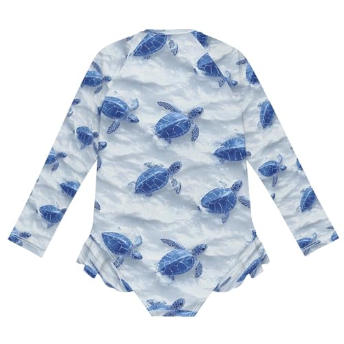 Turtle in Snow Girls Long Sleeve Swimsuits One Piece Zipper Bathing Suit UPF 50+ Rashguard Swimwear